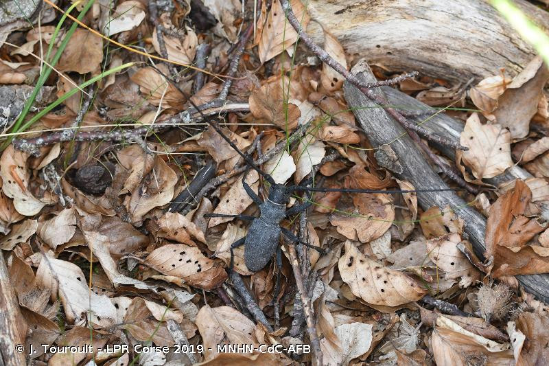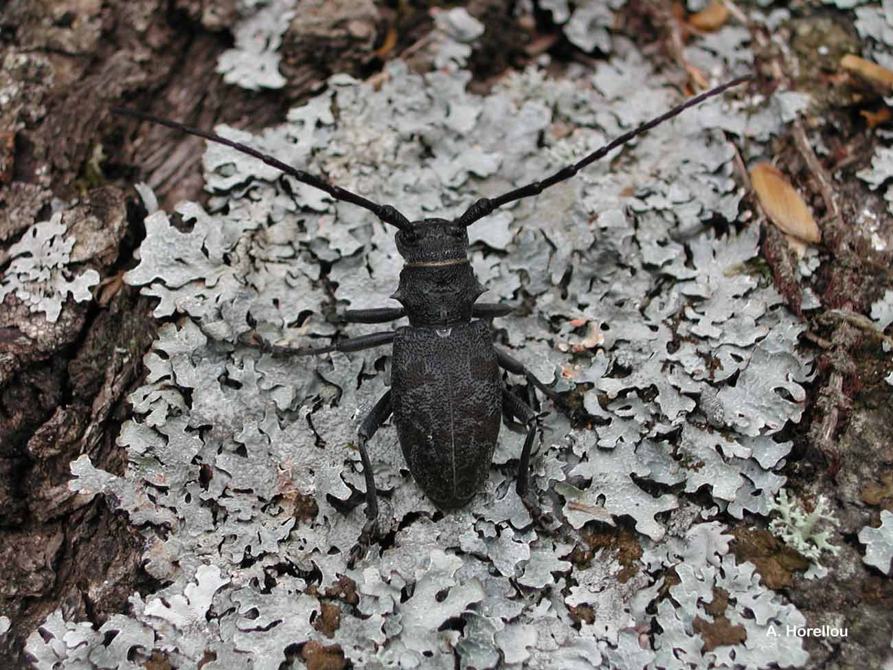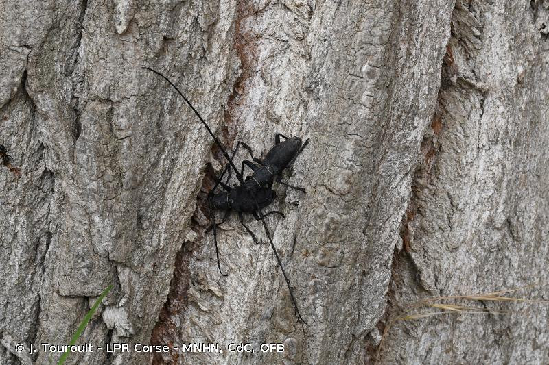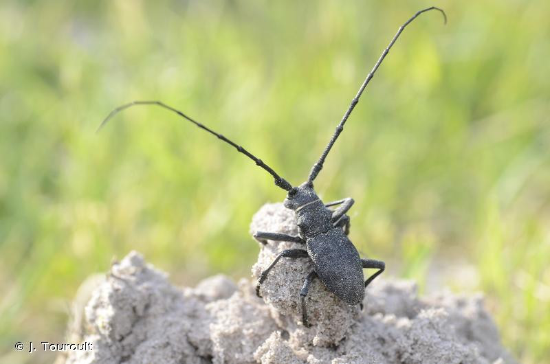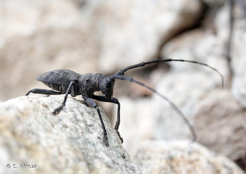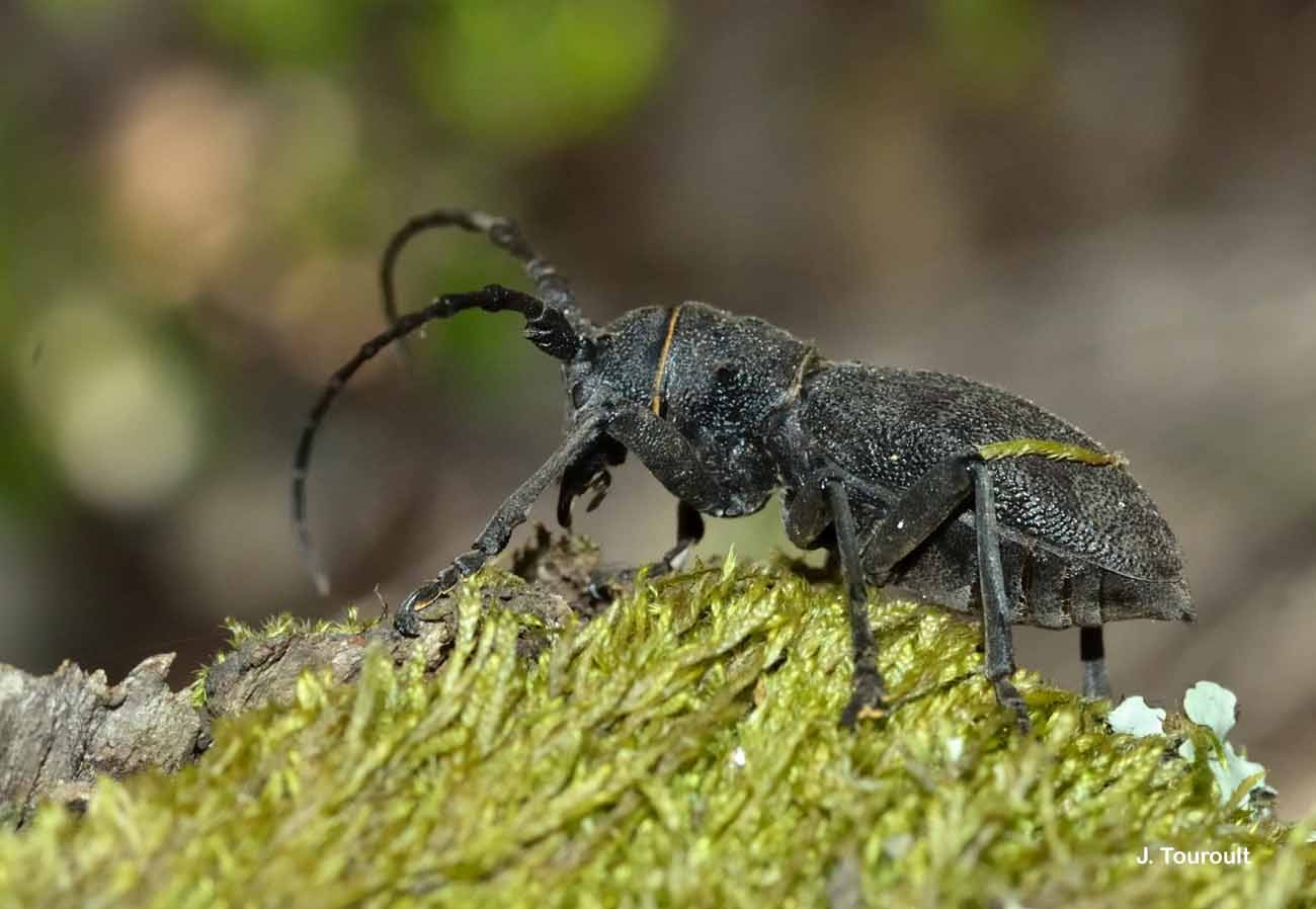 longicorne noir mat, robuste, à forte ponctuation, à cuticule épaisse,