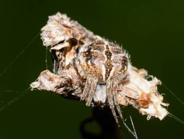 La toile est tissée au printemps en prairies entre les tiges mortes qui restent de l’année précédente. Elle se situe donc à quelques dizaines de centimètres du sol. La retraite est souvent tissée sur le capitule d’une de ces tiges, c’est un tissage dense, plat. Le centre de la toile est parfois pourvu d’un lacis de soie opaque, faisant office de retraite. Les proies sont surtout des insectes volants.