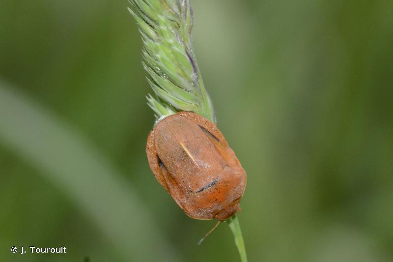Taille : 11 – 13 mm Diagnose : Punaise ovale dont le scutellum recouvre les ailes et l’abdomen en atteignant son extrémité. Sa coloration est généralement uniforme et brun-clair, mais elle peut varier jusqu’au noir. Le scutellum est lisse et porte une carène médiane longitudinale plus claire que le reste du corps, et ses joues (jugas) se rejoignent et se touchent devant le nez (clypéus) (clypéus enclos par les joues). Détermination : Moyennement difficile. Espèces proches : Elle se distingue d’Eurygaster hottentotta qui a le dessus du scutellum verruqueux et un abdomen très large, et des autres espèces d’Eurygaster dont le clypéus n’est pas enclos par les joues. Période d’observation : Mars à septembre avec un pic en juin-juillet. Biologie-éthologie : Cette espèce vit sur plusieurs espèces de graminées de grande taille dont elle pique les graines des épis encore tendres, avec une prédilection pour les avoines. Elle ne s’attaque toutefois pas aux graminées cultivées. Biogéographie et écologie : Espèce ouest-paléarctique qui se rencontre à l'est jusqu'au Kazakhstan et en Azerbaïdjan. Présente en Grande-Bretagne, elle remonte jusqu'à 56° de latitude nord au Danemark et en Lituanie, mais elle est absente en Scandinavie. On ne la rencontre pas au-dessus de 1 400 m d’altitude, et plutôt dans des zones bien drainées et sèches comme les pelouses calcaires, les garrigues, les landes, les friches, mais parfois aussi en bordures forestières, de ruisseau ou de marais.