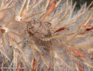 Espèce polyphage vivant sous les plants touffus de callunes, dorycnies, cistes, sauges, turquette. Elle ponctionne les graines tombées au sol, ou les racines sous sa surface. Elle vit le plus souvent au sol, dans la litière ou sous les rosettes de feuilles à la base des plantes.