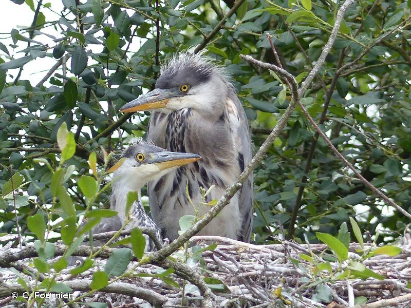 Entre 3 et 5 œufs sont déposés dans un nid souvent volumineux, fait de branchages et recouvert de rameaux plus fins, d’herbe et de plumes. Le nid est réutilisé et augmenté d’une année sur l’autre. La couvaison dure 4 semaines et les jeunes hérons s’envolent à l’âge moyen de 50 jours. Il y a rarement une 2e nichée.