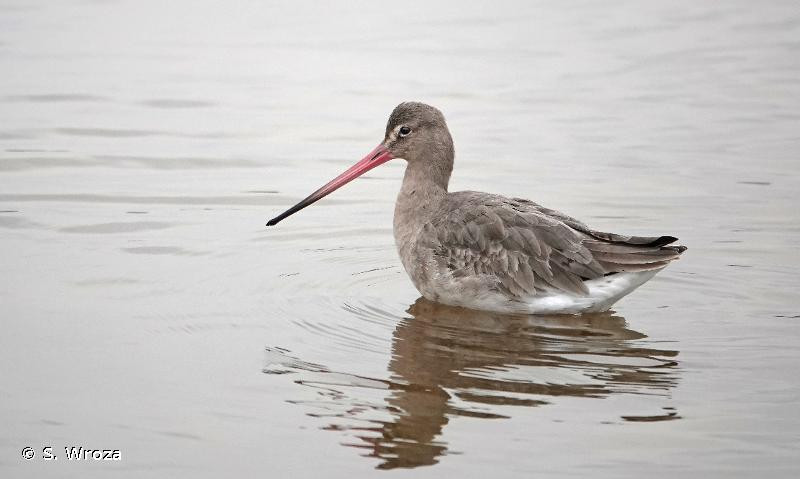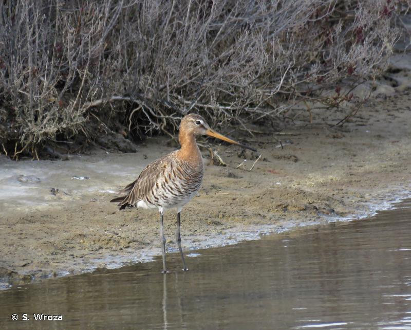 La Barge rousse (Limosa lapponica) est un peu plus petite et moins haute sur pattes, son bec est plus court et davantage incurvé vers le haut. En vol, le noir et blanc de la queue et la large bande alaire de la Barge à queue noire la distinguent de la Barge rousse dont la teinte générale est plus uniforme et dont le croupion blanc remonte en pointe sur le dos.