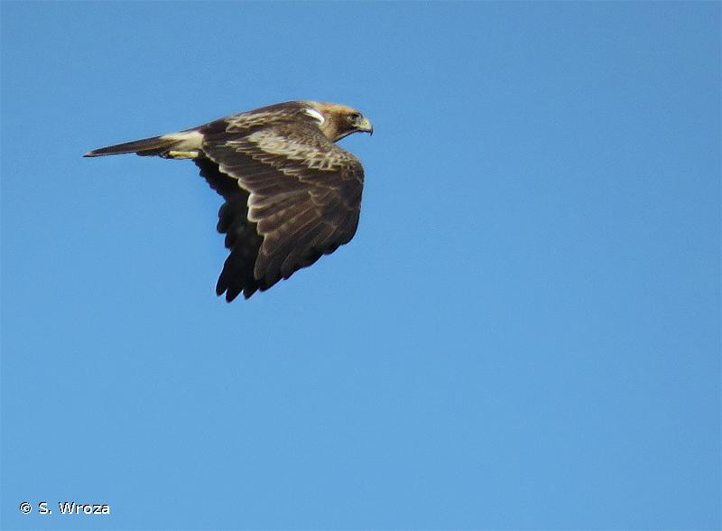 Les confusions sont nombreuses : la forme foncée de l’aigle botté peut être confondue avec le Milan noir (Milvus migrans) et le Busard des roseaux (Circus aeruginosus) en raison de taille et de coloration voisine.