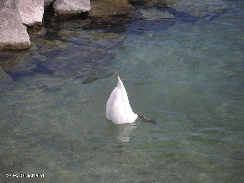 Le Cygne se nourrit surtout de végétaux aquatiques qu’il obtient en plongeant la tête jusqu’à 1 m de profondeur. Il mange aussi des graines et des plantes émergentes à la surface, ou des graminées qu’il broute à terre. Les quelques animaux consommés régulièrement incluent des amphibiens et leurs larves, des mollusques, vers et insectes.