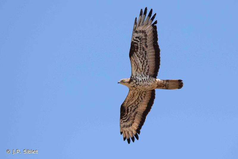 L’aire est située sur une branche (ou à la fourche) d’un gros arbre. Elle est faite en partie de branchettes fraîches pourvues de feuilles, qui sont rajoutées régulièrement au long de la saison, si bien que l’ensemble ressemble à une masse de verdure. La plupart du temps, un nouveau nid est fait chaque année. La ponte unique de 2 œufs est déposée à partir de mai. L’incubation dure environ 35 jours et les jeunes sont volants à l’âge de 40-44 jours. Au contraire de nombreux rapaces, le mâle s’occupe des jeunes et les nourrit à l’aire, même en présence de la femelle.
