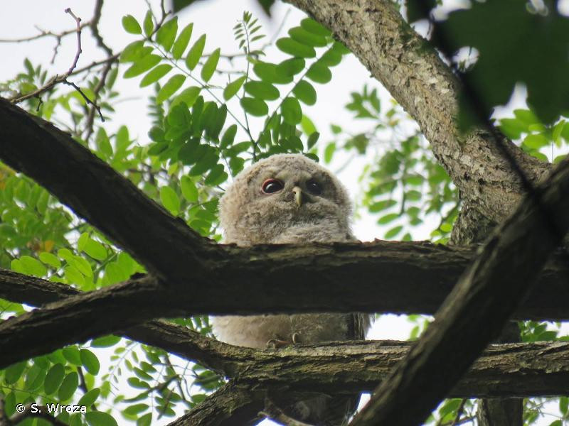 La Chouette hulotte se caractérise par une grosse tête ronde et un corps assez trapu. Elle possède un grand disque facial qui entoure de gros yeux brun foncés. L’espèce témoigne de deux morphotypes indépendants du sexe et de l’âge : une forme rousse et une forme grise. En vol, sa silhouette est plus ramassée et moins fine celle du Hibou-moyen duc et ses larges ailes sont fortement barrées en dessous.