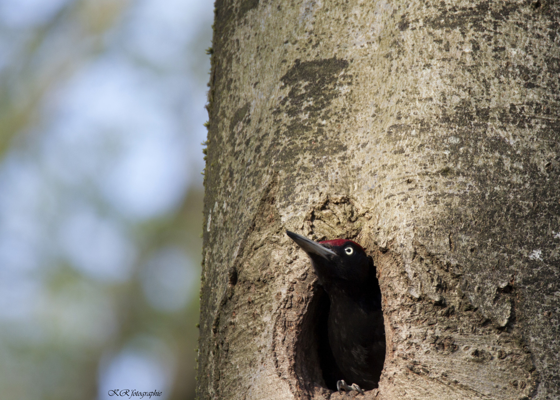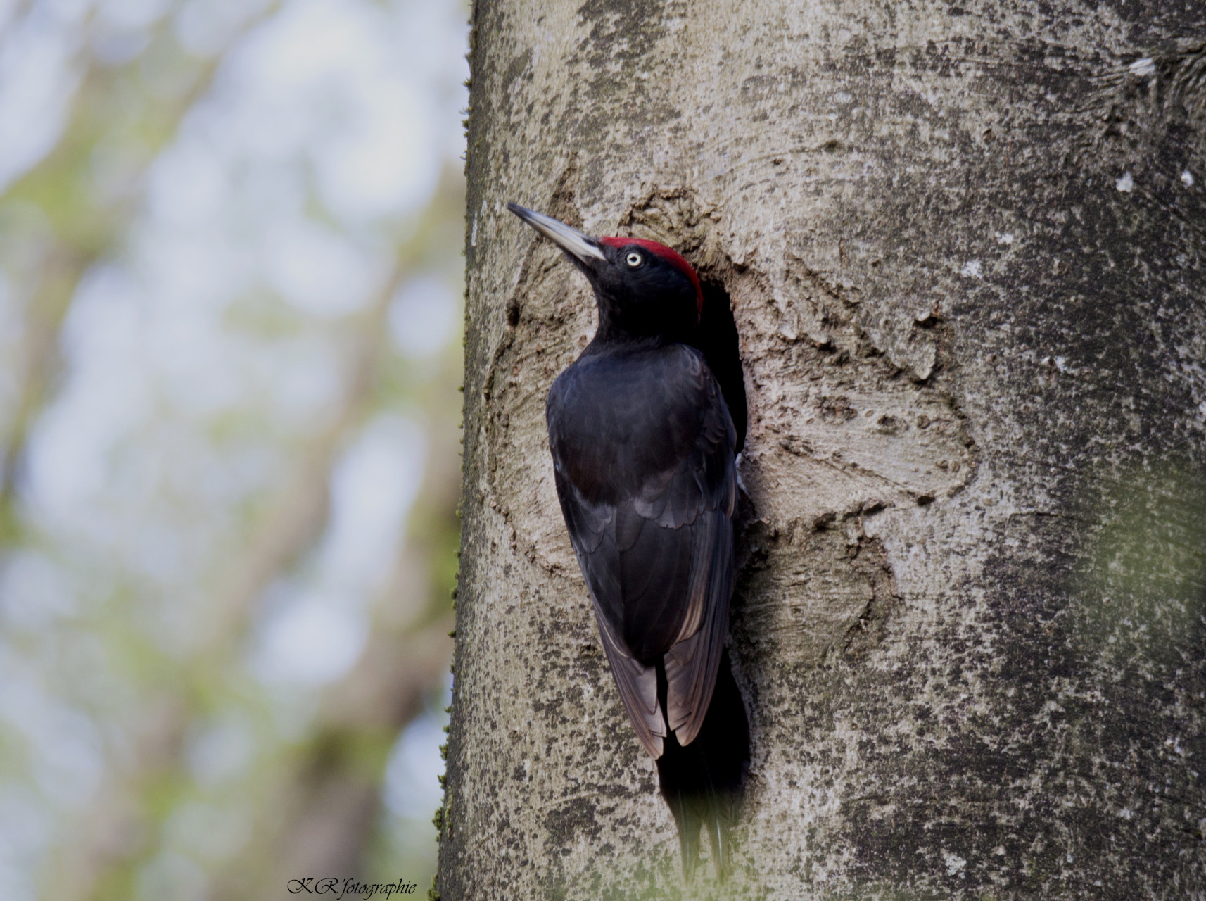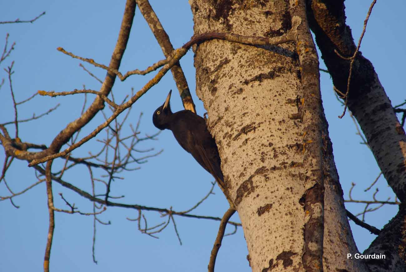 L’espèce est solitaire. Mâle et femelle ont des territoires séparés ou se chevauchant en période internuptiale. La formation du couple débute tôt, la sélection du site et l’excavation du trou de nid commençant dès la mi-février. Dans la plupart des cas, le couple n’est uni que pour une seule saison, de l’hiver à l’été. Les oiseaux âgés restent fidèles à un territoire et à certains arbres à cavités. Les territoires sont très grands, souvent de l’ordre de 300-400 ha pour un couple, parfois moins de 100 ha dans les habitats les plus favorables.