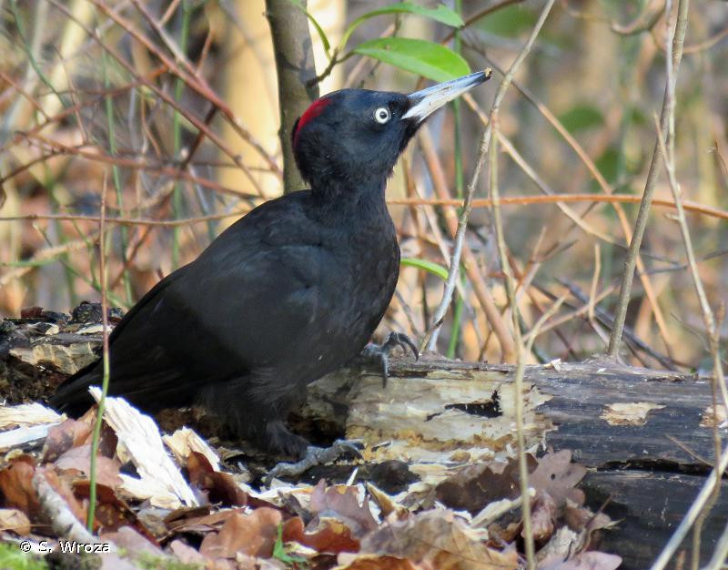 Le Pic noir se nourrit surtout des larves, pupes et adultes de fourmis et de coléoptères xylophages. Son bec est plus grand et plus fort que celui des autres pics européens, mais sa langue se projette plus faiblement (50-55 mm au-delà de la pointe du bec) que celle du Pic vert. Ses larges glandes salivaires produisent une sécrétion visqueuse qui couvre la langue, dont la pointe est garnie de barbillons orientés vers l’arrière. Ils lui permettent d’empaler et d’extraire les larves de coléoptères.