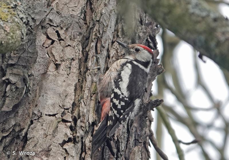 Il se nourrit presque exclusivement d’insectes, parfois aussi de graines et fruits. En période de reproduction, il recherche surtout des chenilles sur les troncs, les branches, les rameaux et les feuilles. Il peut prendre des positions acrobatiques et se laisser pendre la tête en bas. En hiver, l’excavation est surtout effectuée dans le bois pourri et la prospection en surface reste la méthode préférentielle.