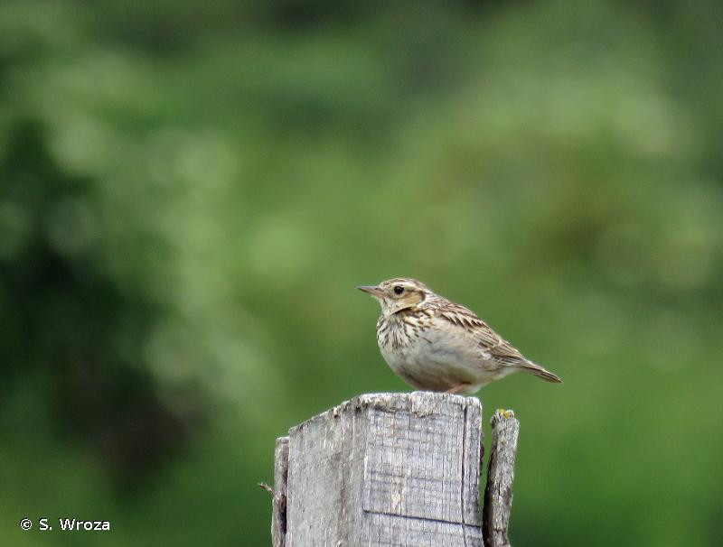 Passereau de taille moyenne, de teinte dominante brunâtre, l’Alouette lulu est dénuée de couleurs vives. Un sourcil très clair souligne sa petite calotte marron rayée. Elle est la seule parmi les alouettes françaises à présenter une tache noire entourée de blanc à l'angle de l'aile. A l'envol, la brièveté de sa queue lui confère une silhouette trapue. Le mâle émet un chant liquide très pur, avec de riches séries mélodieuses d'une grande clarté.