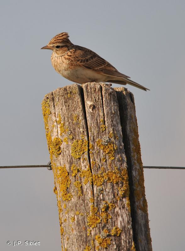 Elle vit en groupe en dehors de la saison des nids, en général quelques dizaines mais parfois plusieurs centaines d’oiseaux. L’espèce est monogame (rares cas de bigamie) et la fidélité du couple est régulière d’une année sur l’autre. Elle est territoriale et chante depuis le sol, sur un perchoir ou en vol. Le vol nuptial comporte plusieurs phases, la plus longue correspondant à un vol sur place. Le chant émis pendant la phase ascendante caractérise les périodes de formation des couples et de disputes territoriales. La parade aérienne dure en moyenne 2 minutes, mais des temps exceptionnels de 20 minutes sont rapportés.