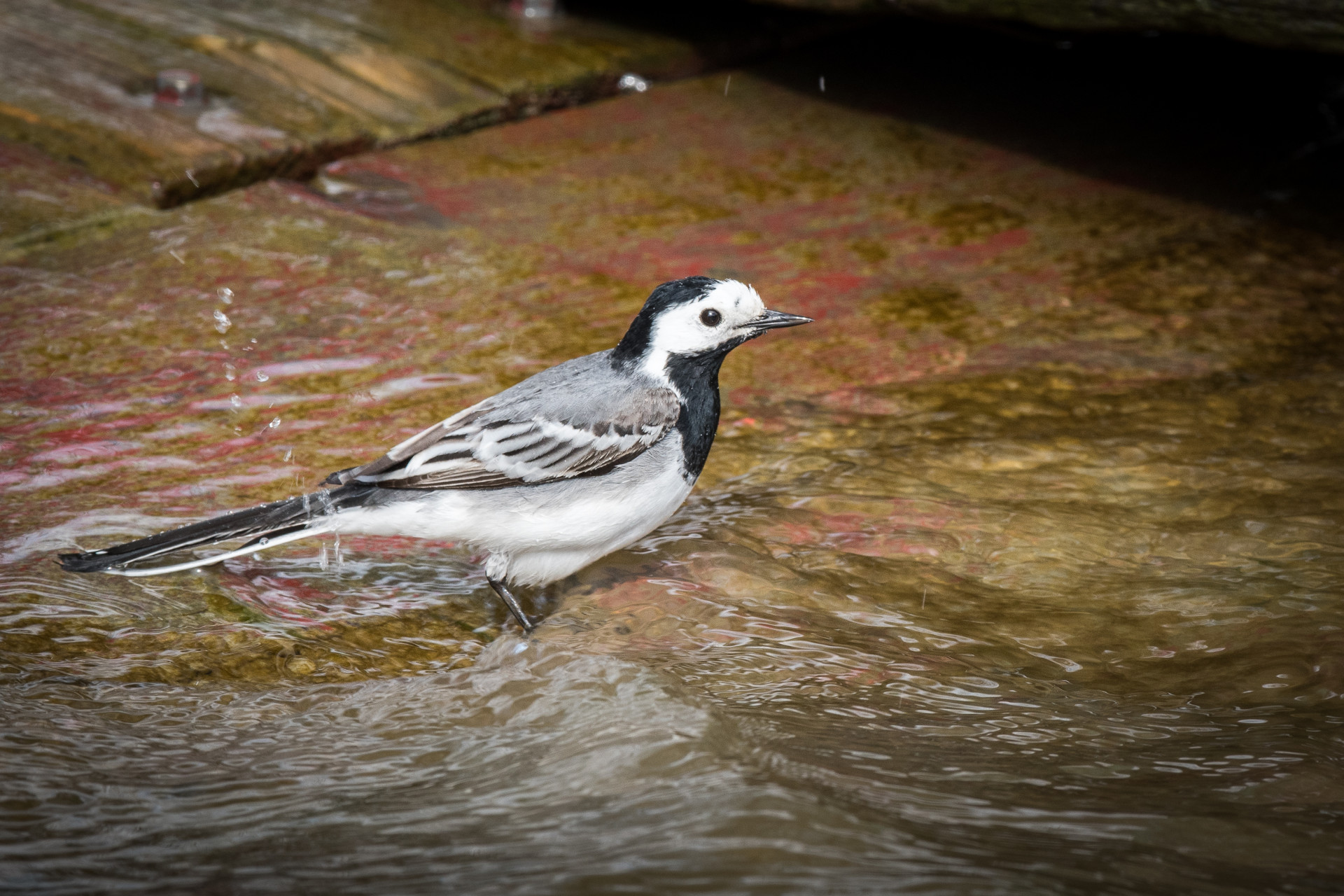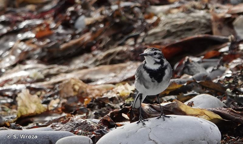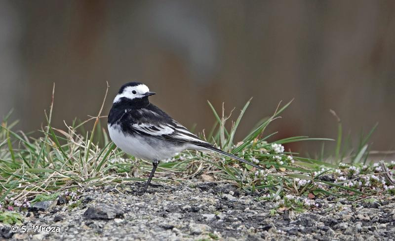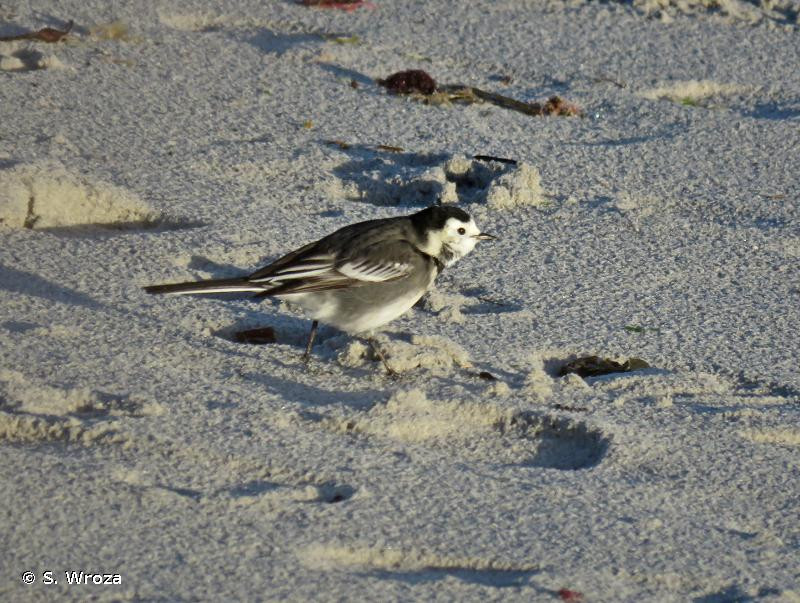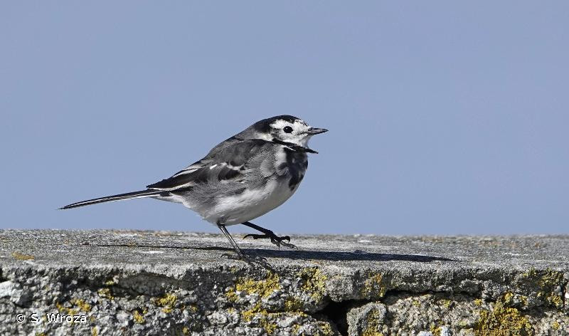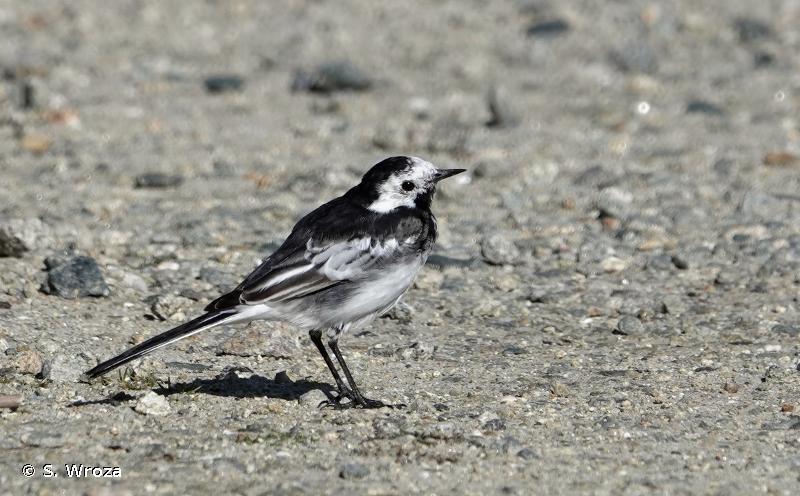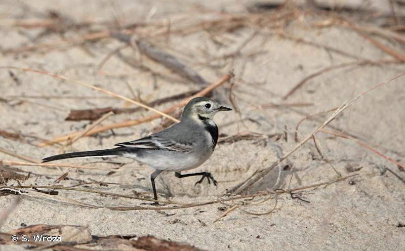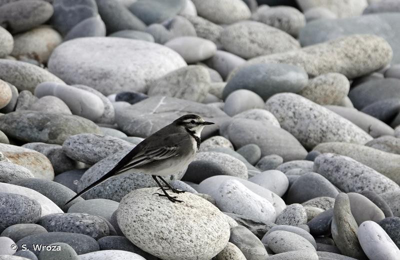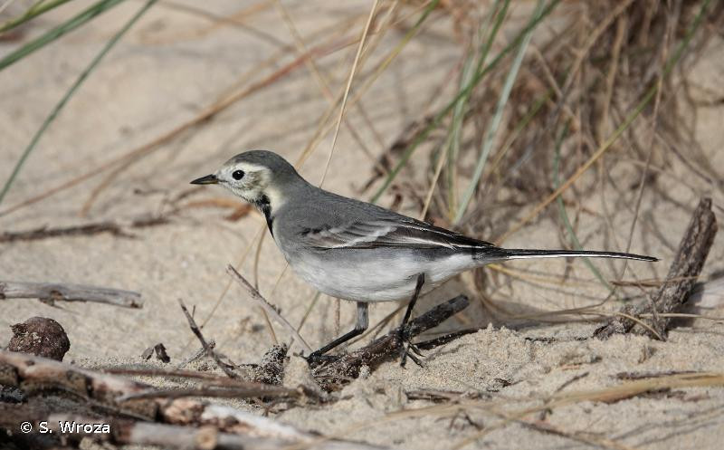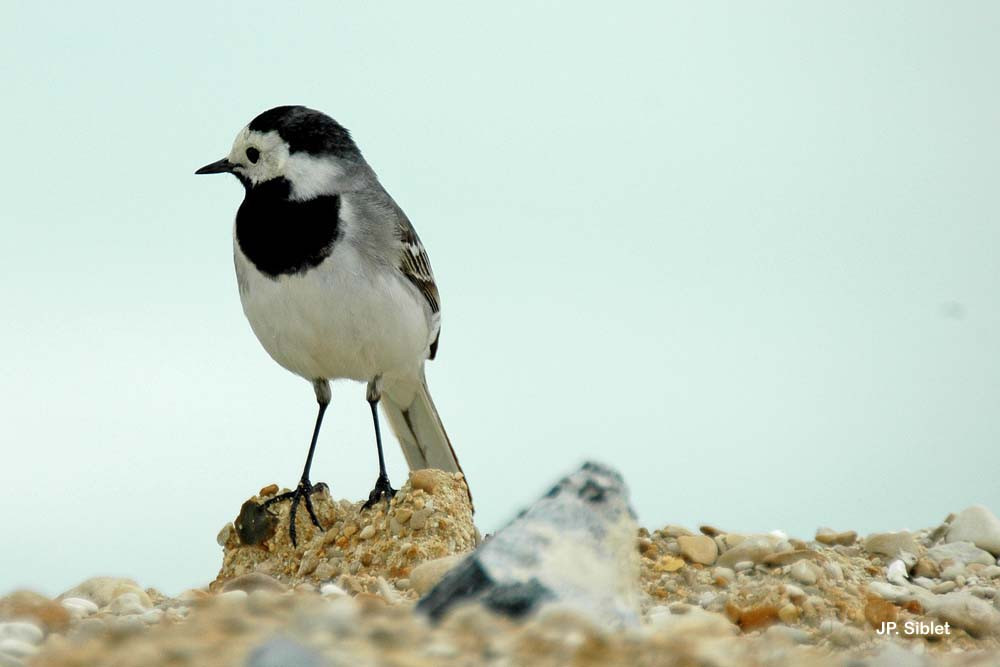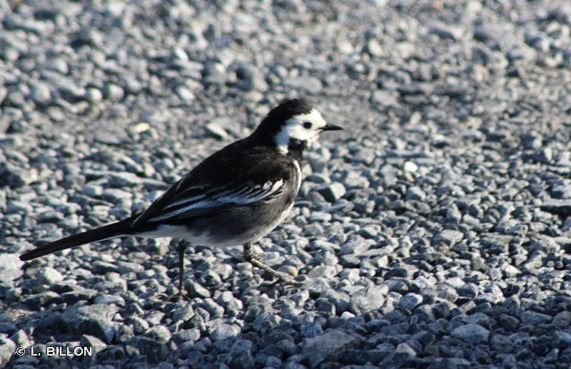La Bergeronnette grise est un passereau à silhouette élancée, remarquable par sa longue queue noire bordée de blanc qu’elle agite perpétuellement. Le mâle présente des joues et un front blancs encadrés par une calotte et un plastron noirs. Le dos est gris argenté chez la sous-espèce la plus couramment rencontrée.