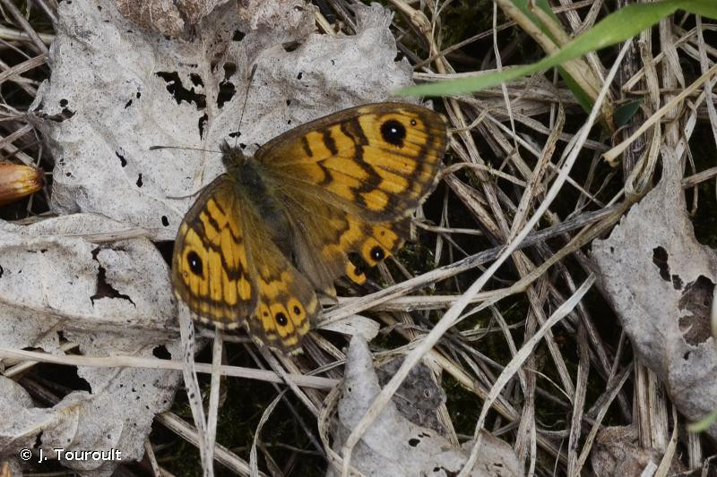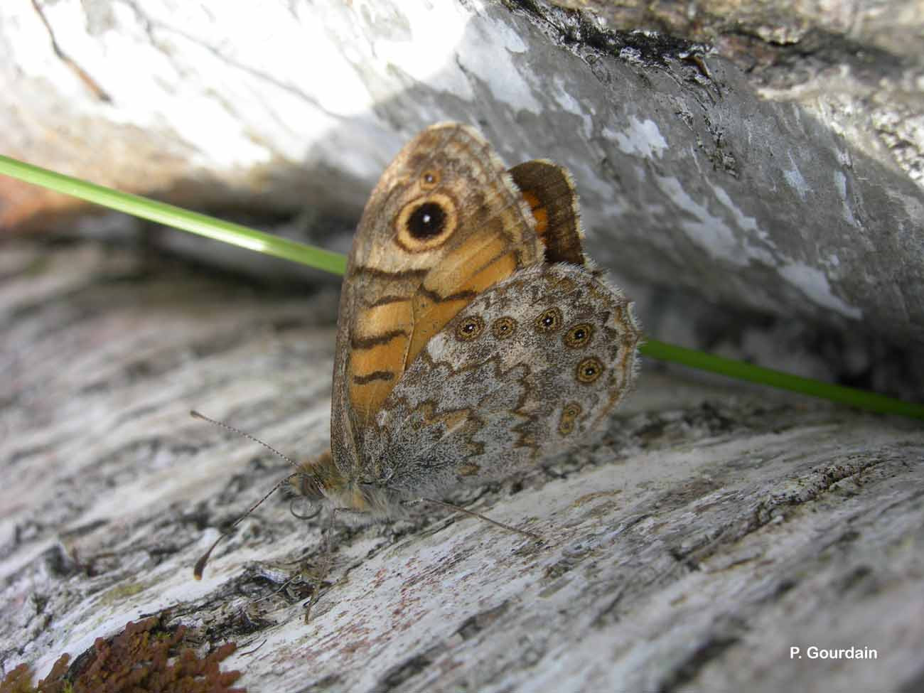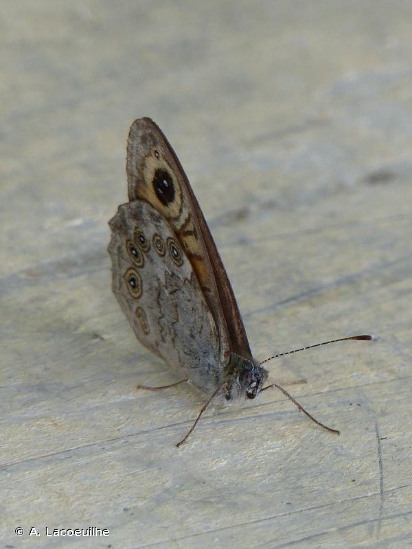 Le dessus des ailes est fauve orangé avec des stries brunes notamment au niveau de la cellule. Il a un ocelle pupillé de blanc à l'apex des ailes antérieures. Les postérieures possèdent une série d'ocelles submarginales. Chez le mâle, on observe une large tache androconiale transversale sur les antérieures. Le dessous des ailes postérieures est marbré de brun et de gris avec une série d'ocelles submarginales.