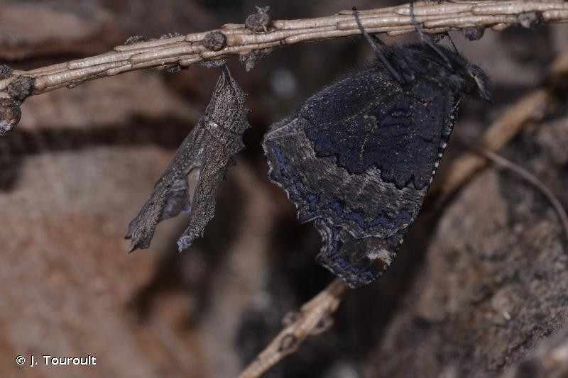 Papillon de taille moyenne couleur fauve rougeâtre avec des taches noires et jaunes et des lunules bleues à la marge. Le revers est brun foncé - noir à la base et ocre-jaunâtre vers l’extérieur. La chenille est de couleur noir ponctuée de petits points blancs avec des bandes jaunes sur les côtés et des épines noires ou jaunâtres.