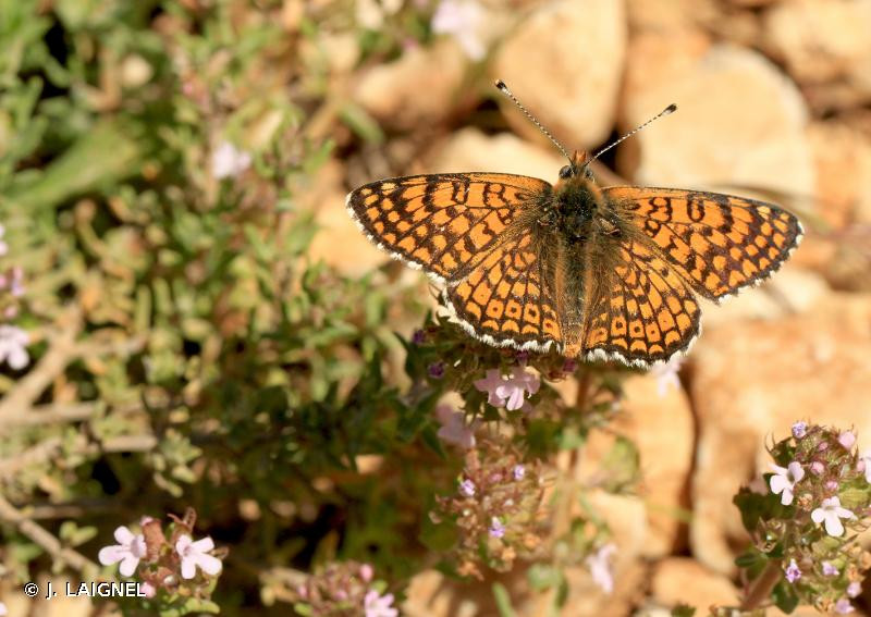 Elle peut être confondue avec les autres Mélitées. Elle se distingue par la présence de points noirs dans la bande submarginale et par la forme concave du bord interne des lunules noires de l’aile postérieure.