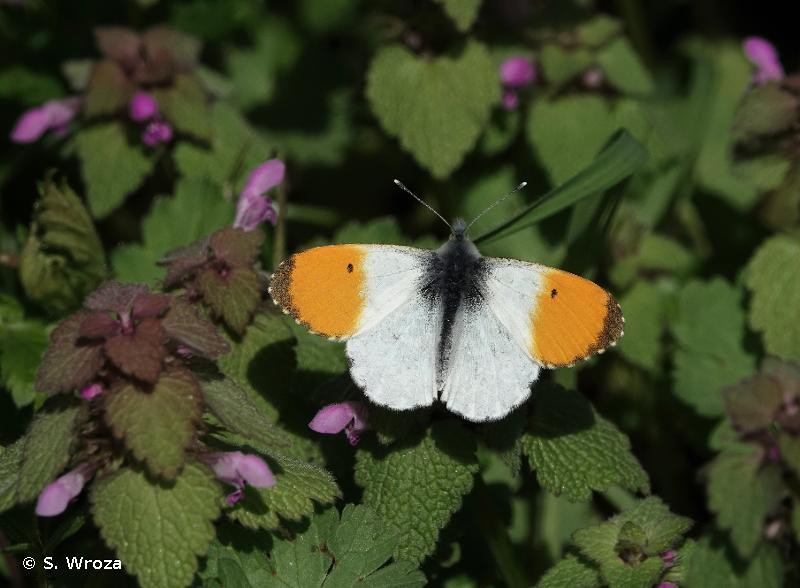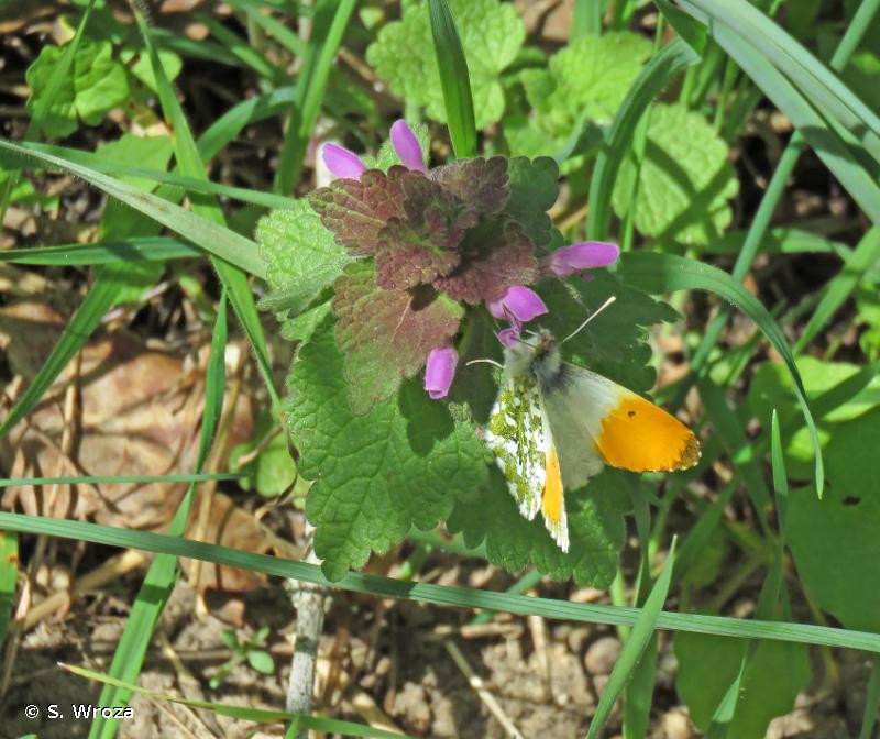 Le mâle adulte est relativement facile à reconnaître. Espèces proches : Le mâle peut être difficilement confondu avec le Marbré-de-vert qui n’a pas de tâche orange aux ailes antérieures. La femelle ressemble à certaines Piérides. Période d’observation : L’adulte est visible de mars à mai en plaine et de juin à début août en montagne.