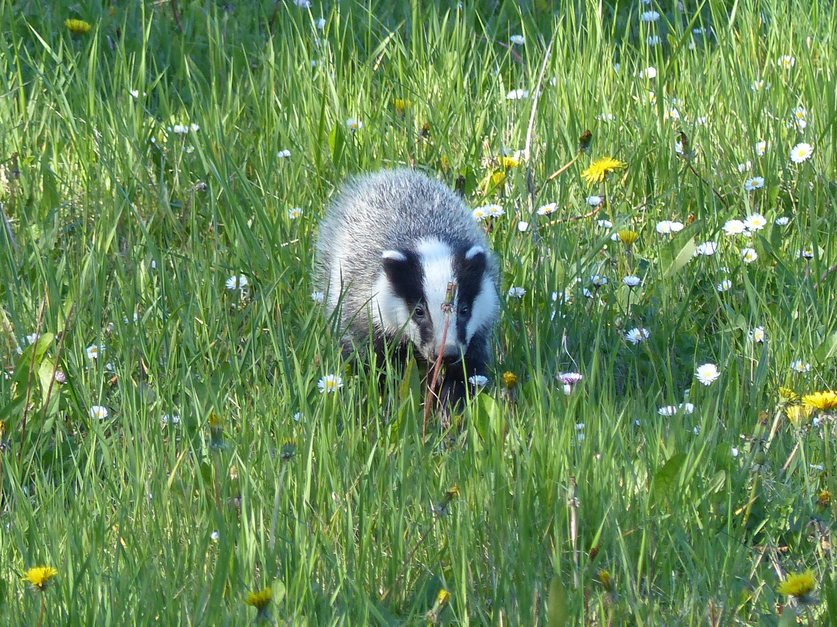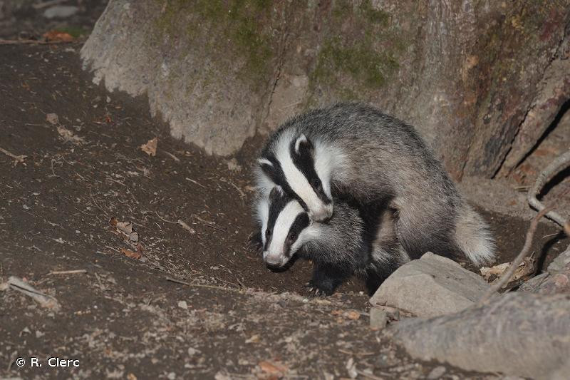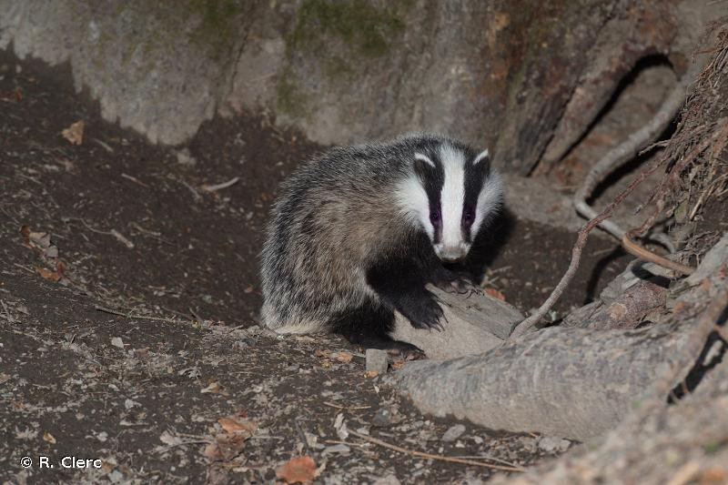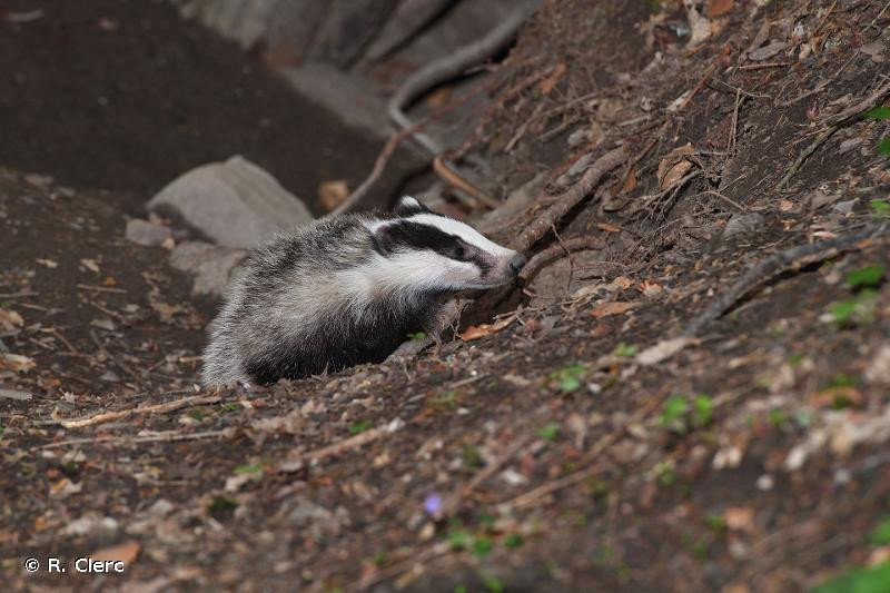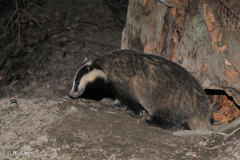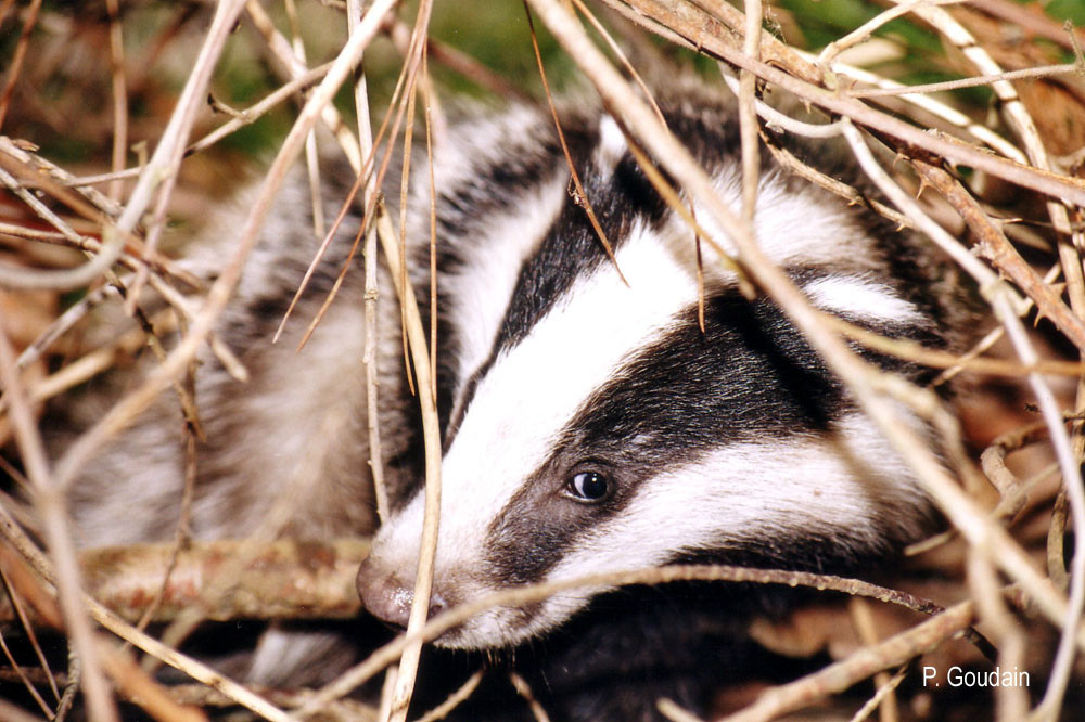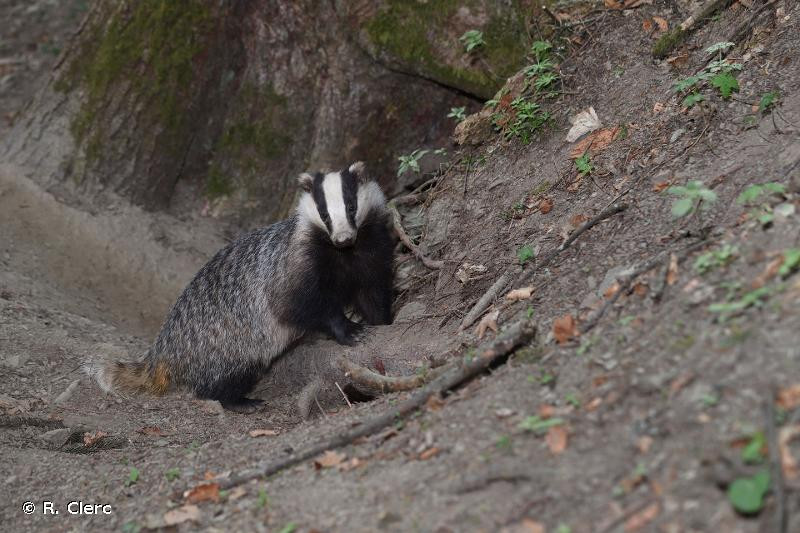 Longueur : 56-89 cm plus 11 à 20 cm de queue. Hauteur au garrot : 30 cm. Poids : 8-20 kg. Dents (38): I3/3, C1/1, P4/4, M1/2. Sa silhouette massive avec ces pattes robustes lui donne l'allure d'un petit ours. La tête est allongée, blanche avec une bande noir recouvrant les yeux allant du museau aux oreilles. Les oreilles ont un liseré blanc sur le contour et sont noires au milieu. Les pattes, semi-plantigrades, ont 5 doigts portant des griffes non rétractiles, très longues pour les pattes antérieurs. L'empreinte ressemble à celle d'un ourson. Le pelage dorsal est gris et les poils sont longs et raides. Le pelage du ventre et des pattes est noir. Le mâle est plus lourd que la femelle. Il ne peut se confondre avec aucune autre espèce en France. Nocturne, il passe sa journée au terrier et attend le crépuscule pour s'activer. Il commence alors à se toiletter et à nettoyer son terrier avant de partir à la recherche de sa nourriture. Il n'hiberne pas mais diminue son rythme d'activé en hiver. La maturité sexuelle est atteinte à 2 ans. L'accouplement a lieu de janvier à mars. Le développement de l'embryon est interrompu pendant 10 mois et ne reprend qu'en novembre-janvier. La gestation dure alors 2 mois. La femelle met bas une fois par an de 2 à 7 jeunes en février-mars. Les blaireautins s'émancipent vers 4 mois mais restent dans leur clan. Ils peuvent vivre jusqu'à 15-20 ans. Omnivore, il se nourrit d'insectes, de petites mammifères, de batraciens, de charognes mais aussi de fruits, de céréales... Néanmoins, le ver de terre reste l'aliment qu'il consomme le plus. Bien qu'il habite des milieux très variés (bocages, landes ou prairies), les endroits boisées restent sa préférence. Il peut se retrouver jusqu'à 2000 m. d'altitude. Il gîte dans des terriers qu'il aménage lui-même. Ceux-ci sont composés de nombreuses chambres tapissées de végétaux et reliées entre elles par tout un réseau de galeries. Le terrier principal compte plusieurs entrées et est occupé par l'ensemble du clan. Le blaireau occupe aussi occasionnellement des terriers dit secondaires qui sont plus petits et ne compte qu'une ou deux gueules. Les blaireaux forment des clans territoriaux pouvant compter de 5 à 8 adultes plus les jeunes. Référence : HENRY C., LAFONTAINE L., MOUCHES A., 1988. Le Blaireau (Meles meles L., 1758). Société française d’Etude et de Protection des Mammifères (SFEPM). Encyclopédie des carnivores de France, n°7. 35p.