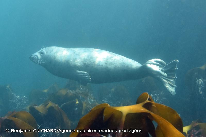 Opportuniste, le Phoque gris se nourrit d’une grande variété de poissons (saumon, morue, hareng, raies,...) mais aussi de pieuvres et calamars.