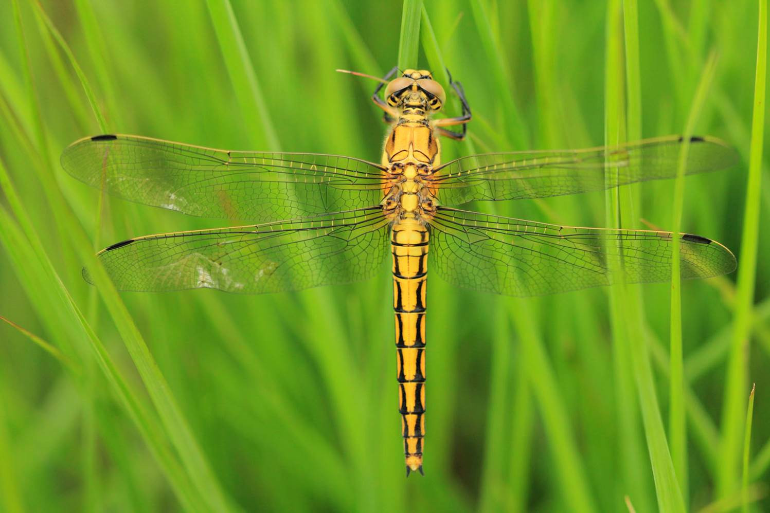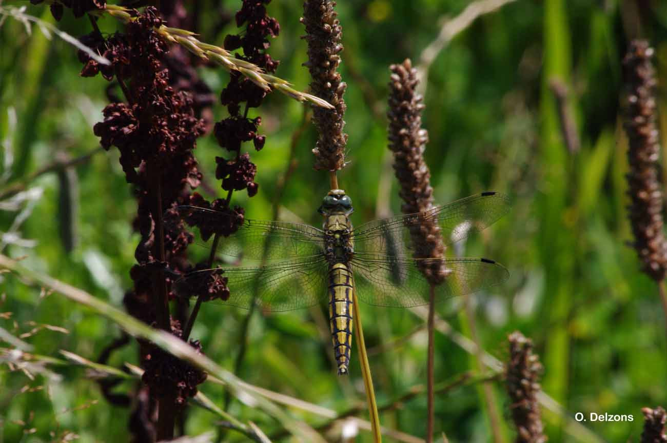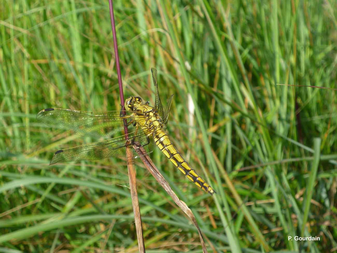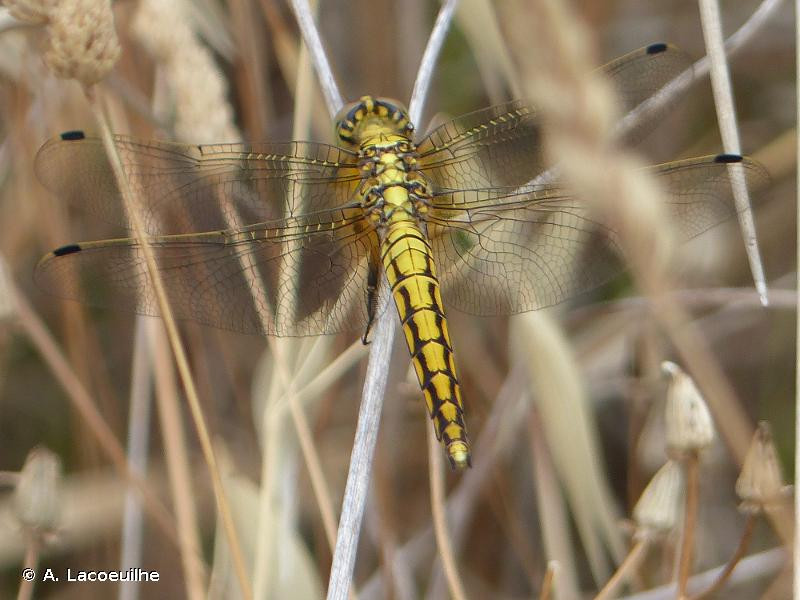 C'est une libellule à l’abdomen bleu, jaune ou noir ne possédant pas de tache noir à la base des ailes et des ptérostigmas et des cercoïdes noirs.