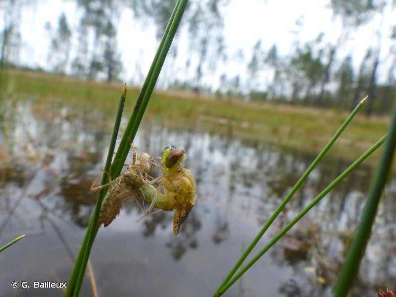Les larves vivent à la surface des sédiments tourbeux, à proximité des rives. Les mâles adultes, quant à eux, se posent sur les buissons ou les formations herbeuses bordant les étangs tourbeux ou les tourbières, à des endroits où ils ont vue sur l’eau et les sites de ponte possibles. A faible densité, ils montrent de forts comportements territoriaux. On les observe de fin mai (fin avril dans le sud) à mi août avec un pic en juin.