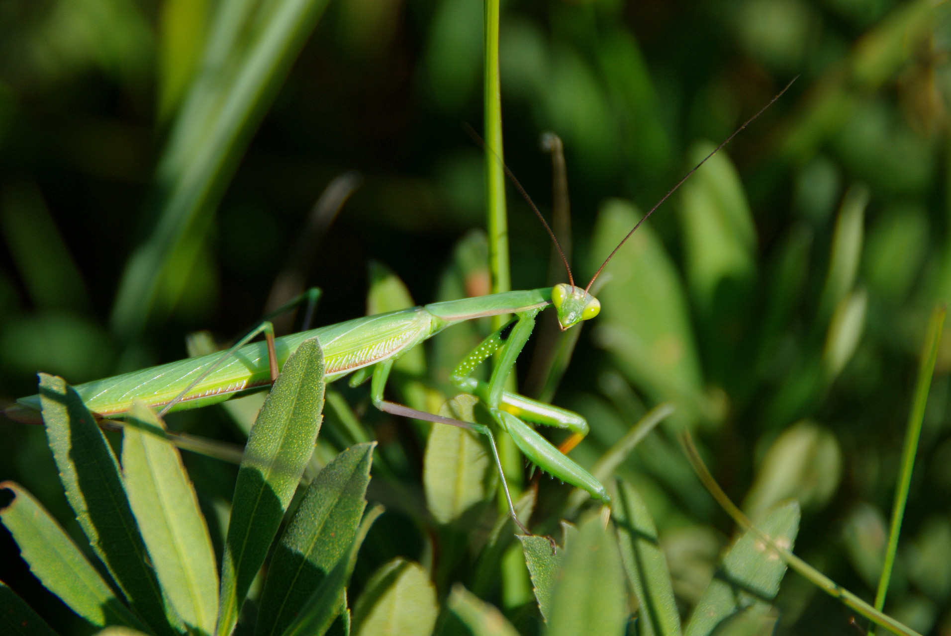 Mantis religiosa est observable dans la végétation herbacée, du sol à la strate arbustive ; plus particulièrement dans cette dernière à l’état adulte. Les jeunes sont plus souvent visibles à hauteur de l’herbe. Les mâles s’envolent sur quelques mètres suite à un dérangement. La ponte a lieu au cours de l’été, de juillet à septembre. L’espèce passe l’hiver sous forme d’œufs dans une oothèque accrochée à un support. Les jeunes au printemps sont très difficilement observables car très petits.
