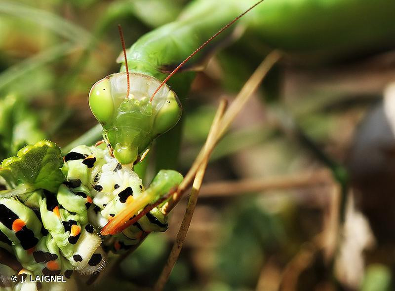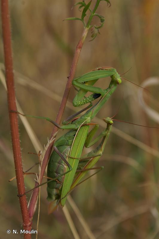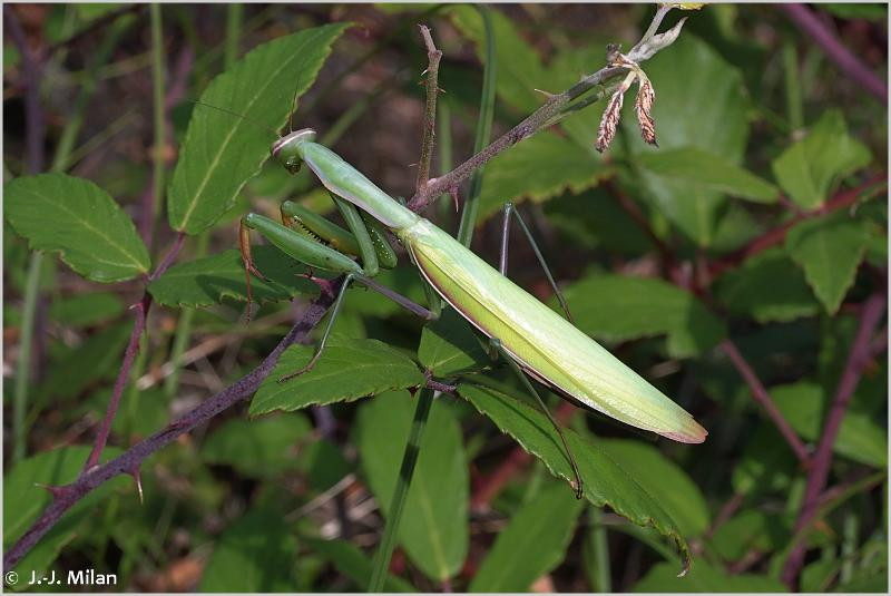 Mesure entre 43 et 88 mm, le mâle est plus petit et plus grêle que la femelle. La plus grande mante en France, est répartie quasiment sur tout l’hexagone.