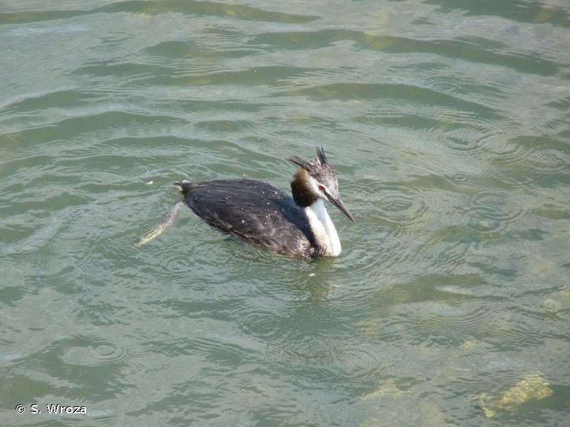 C’est le seul grèbe européen à se nourrir essentiellement de poissons. Du printemps à l’automne, des insectes et des larves complètent l’alimentation.